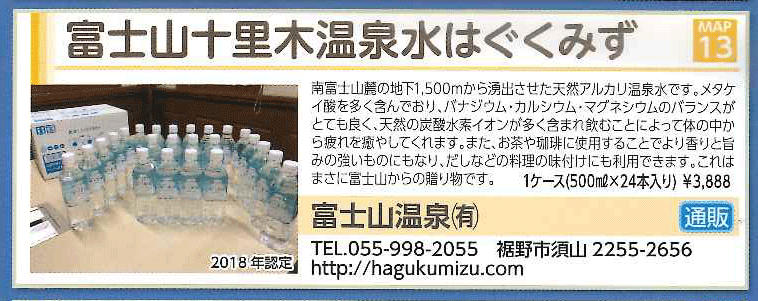 富士山十里木温泉水「はぐくみず」がすそのブランドに認定されました!!ありがとうございます☆